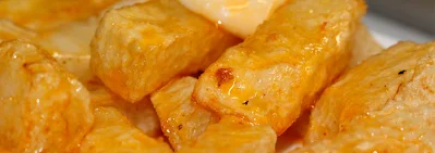 Es el plato estrella de la casa y una de las mejores tapas de toda Barcelona. (Se trata de una bola de patata rellena de carne picada, bañada en alioli y salsa picante).